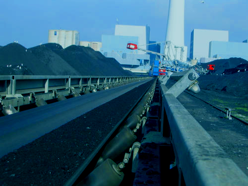 • 聚酯輸送帶又稱EP輸送帶,其抗拉體為經(jīng)向滌綸,緯向為棉綸交織而成的帆布,其性能特點是經(jīng)向的低延伸率和緯向的優(yōu)良成槽性能,耐水性好,濕態(tài)強度不下降,不發(fā)生霉變,聚酯的初始量高,可取較低的安全系數(shù),適用于中長距離較高載重、高速條件下輸送物料。